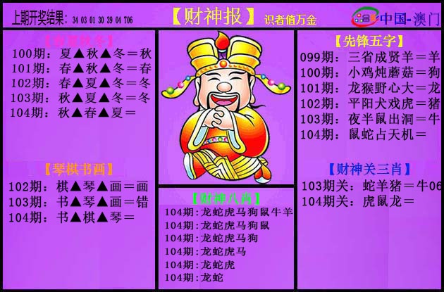 104期: 澳门六合彩红姐彩圖信封【黄财神报】每期自动更新